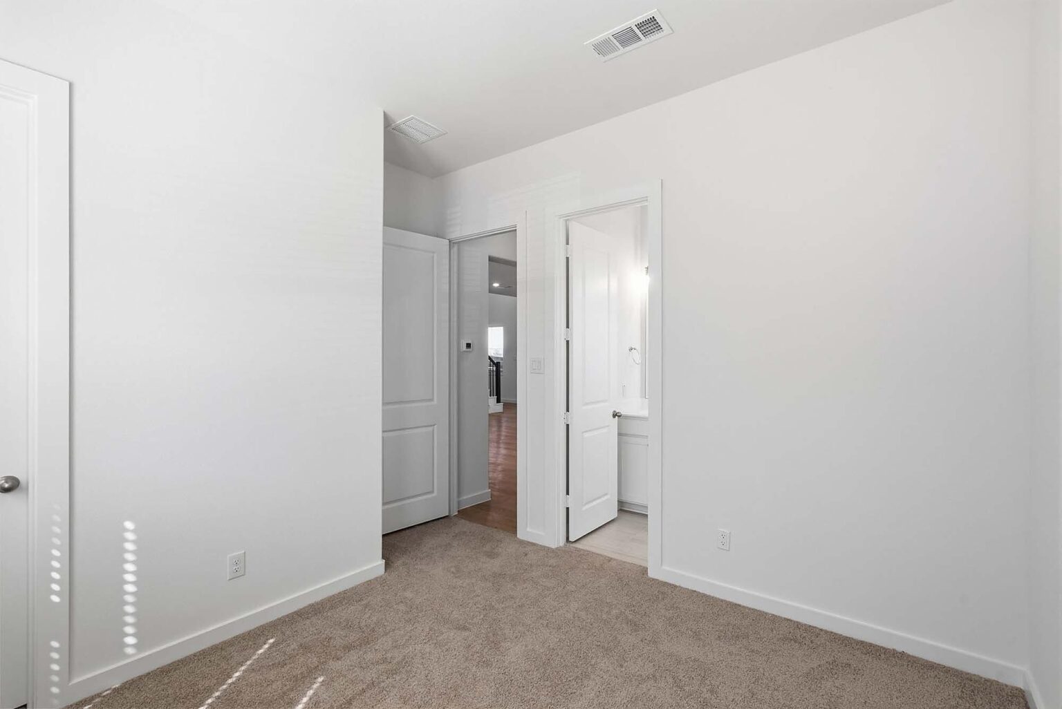 The Starling offers 2,273 square feet of beautifully planned living space with four bedrooms, three and a half bathrooms, and plenty of room to grow. The main floor is anchored by a spacious open-concept kitchen with a walk-in pantry and oversized island, flowing into a bright casual dining area and a welcoming living room with easy access to a covered patio. A private downstairs suite—complete with its own full bath—is perfect for guests or multigenerational living. Upstairs, the primary suite features dual walk-in closets and a spa-inspired en suite bathroom, while two additional bedrooms enjoy their own walk-in closets and a shared bath. A generous loft and second-floor laundry room offer extra convenience and space for everyday living. With high-end finishes like quartz countertops, Energy Star® efficiency, luxury vinyl plank flooring, and designer hardware, this plan embodies the elevated living standard of Indigo.