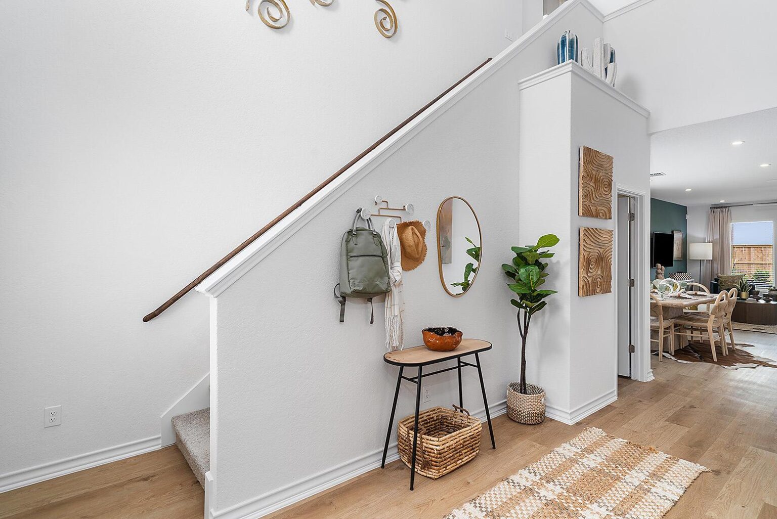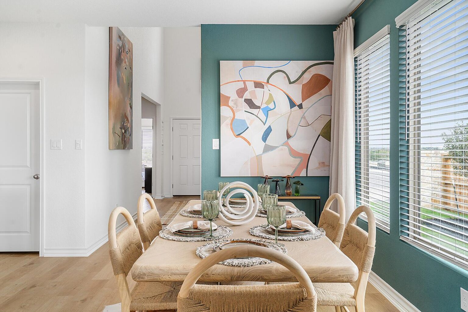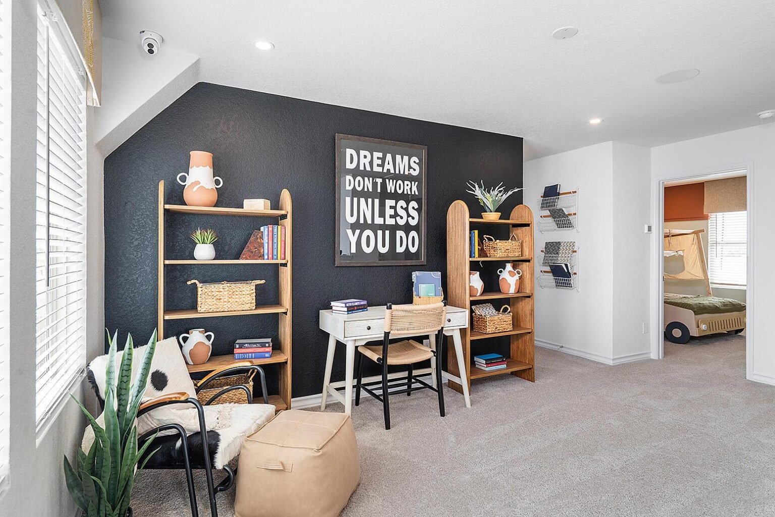 The Bandera is an inviting 1,945 sq. ft. home that effortlessly blends open-concept living with thoughtful separation of space. The main floor features a seamless flow between the kitchen, casual dining, and living room, extending to a covered patio for outdoor enjoyment. A private primary suite on the first floor offers a spacious walk-in closet and an en-suite bath for added convenience. Upstairs, a versatile game room anchors three additional bedrooms, providing plenty of space for relaxation or activities. A dedicated laundry area, ample storage, and a two-car garage enhance everyday functionality. Designed for modern living, this home balances comfort, style, and practicality.