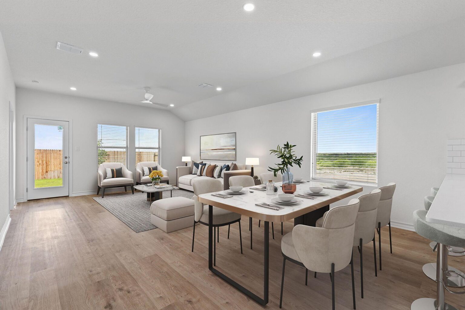The Val Verde is a thoughtfully crafted 1,500 sq. ft. home designed for both comfort and functionality. Its open-concept layout seamlessly connects the kitchen, dining, and living areas, creating a bright and inviting atmosphere. A flexible front room offers space for a home office or hobby area, adapting to your needs. The private primary suite boasts a spacious walk-in closet and an en-suite bath, while two additional bedrooms share a conveniently located second bath. A covered patio extends the living space outdoors, perfect for relaxing or entertaining.