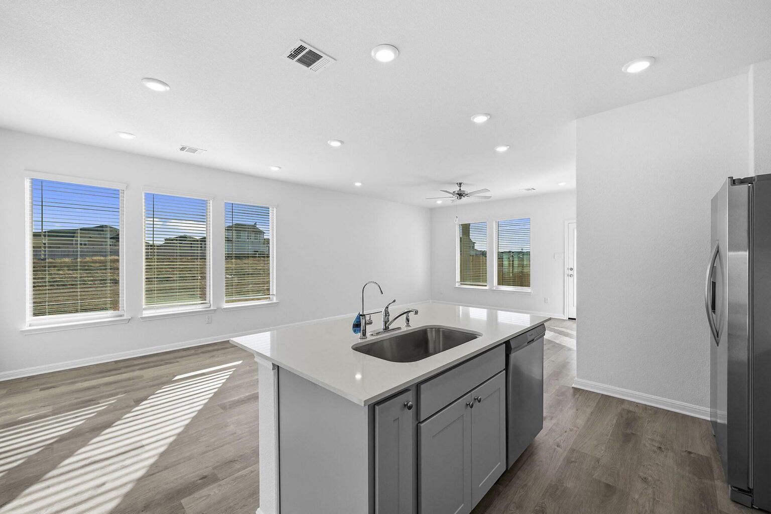 Experience the ultimate in spacious family living with the Navarro, an expansive 2,350-square-foot floor plan spanning two beautifully designed levels. This impressive home features five versatile bedrooms and three and a half bathrooms, providing ample space for everyone in the household. The main floor boasts a grand open-concept layout, where a chef-inspired kitchen with a walk-in pantry overlooks the casual dining area and a massive living room. Tucked away for maximum privacy on the first floor, the primary suite features a spa-like bath and an oversized walk-in closet. Upstairs, you'll find a massive game room that serves as a second living area, surrounded by four additional bedrooms and two full baths. Outdoor entertaining is a breeze on the oversized covered patio, perfectly positioned off the main living area. Complete with a two-car garage and a dedicated laundry room that includes a washer and dryer, the Navarro is the gold standard for modern, large-scale living.