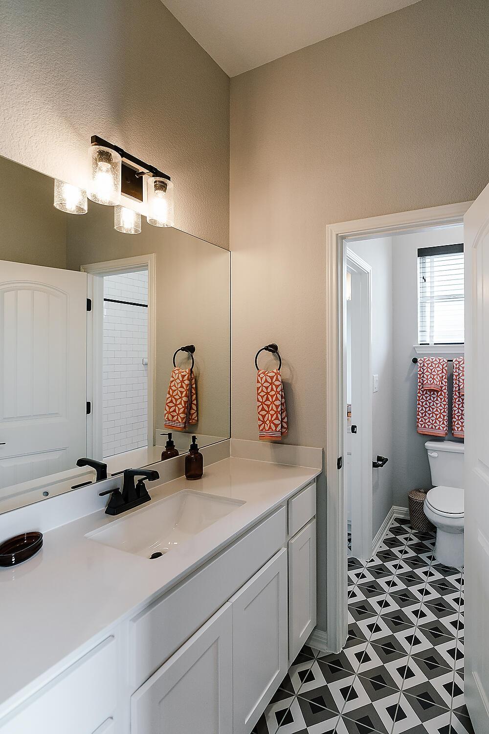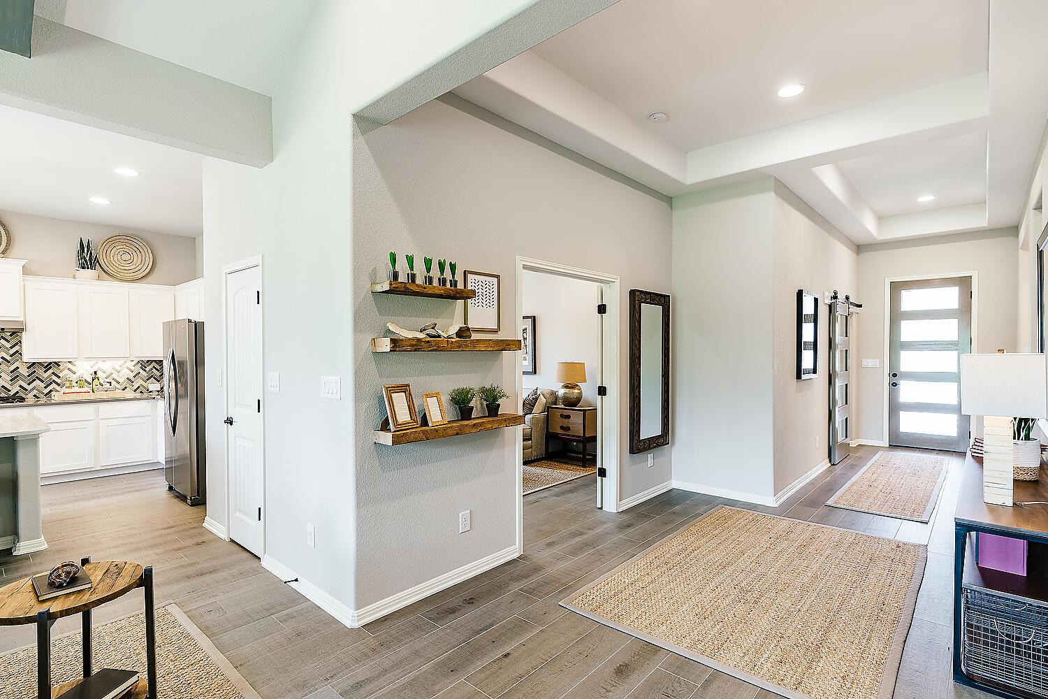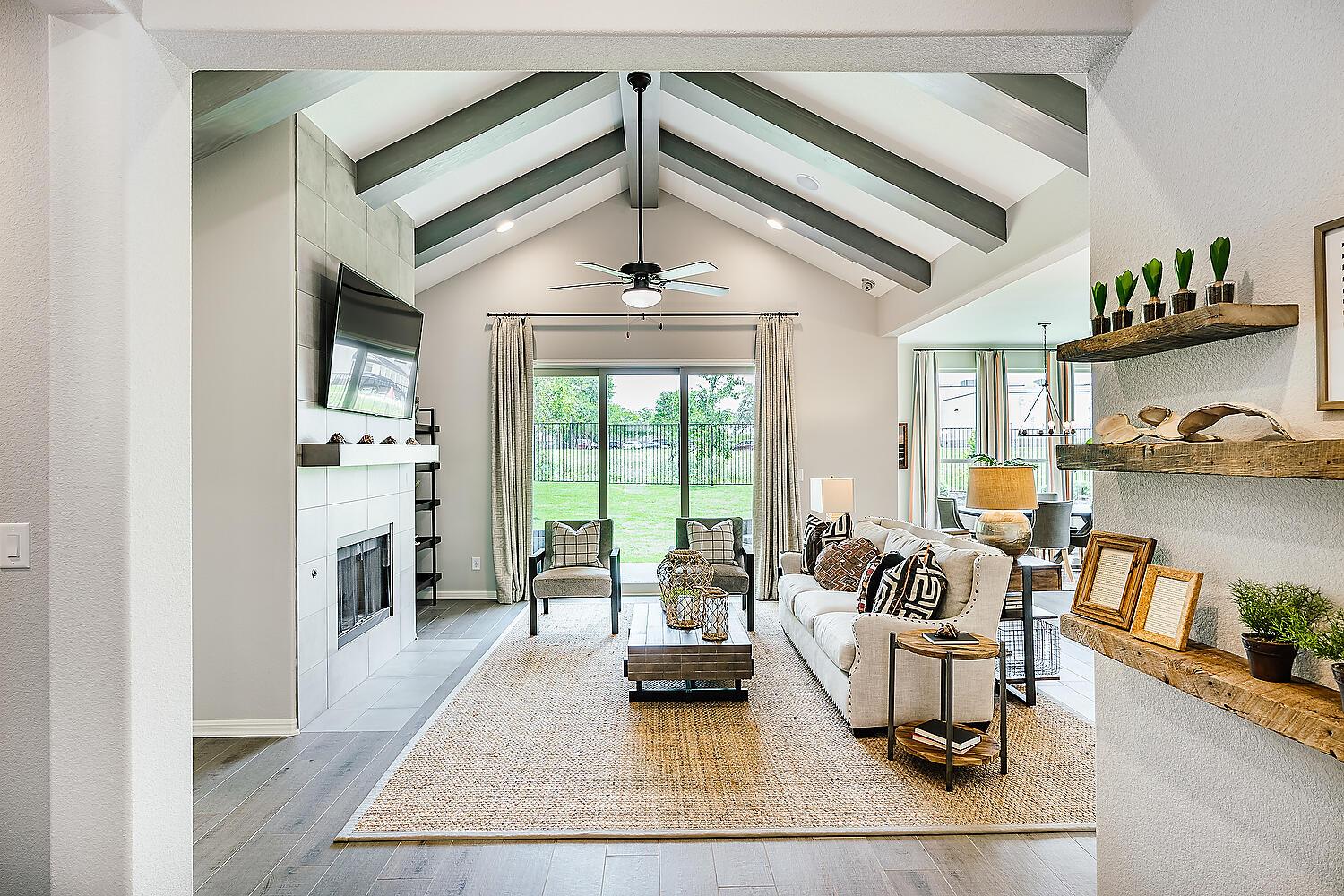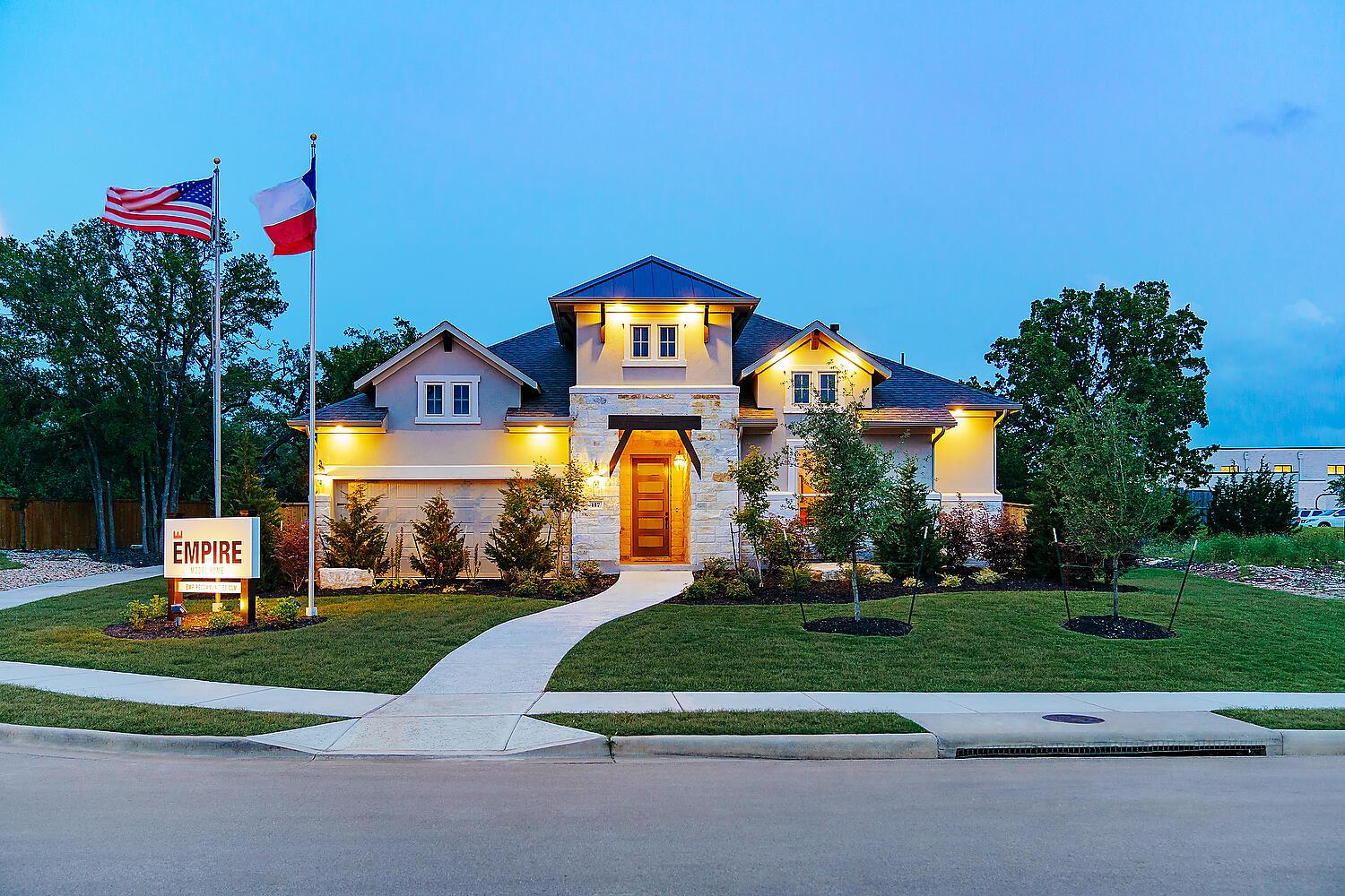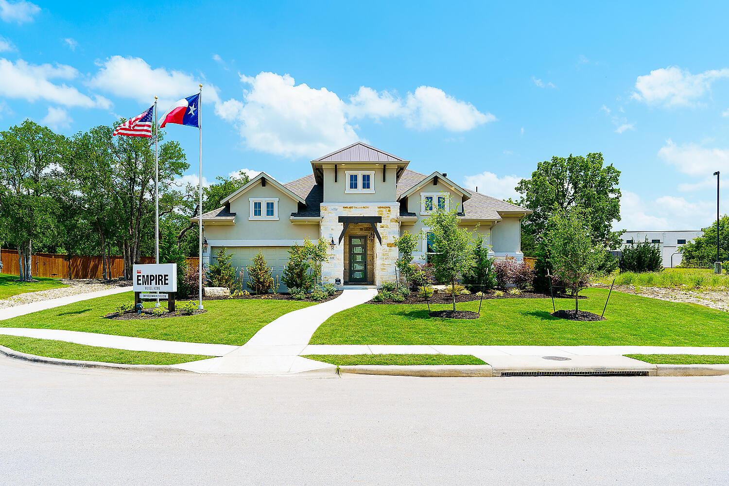 The Bowman Plan at Everly Estates offers a spacious 2,550 sq. ft. layout situated on a premier 1/2 acre lot. This energy-efficient home features a high-efficiency air conditioning system and Low E 3 solar reflective windows to ensure year-round comfort. The interior is highlighted by luxury vinyl plank flooring and a wood-burning fireplace with a custom stone surround. The gourmet kitchen is equipped with J-Kraft custom shaker cabinets and a premium GE® stainless steel appliance package. Outside, the property includes a fully sodded yard with native drought-resistant landscaping and a professional irrigation system. With its brick and stone elevation and 30-year architectural shingles, this home perfectly blends Hill Country accents with modern durability.