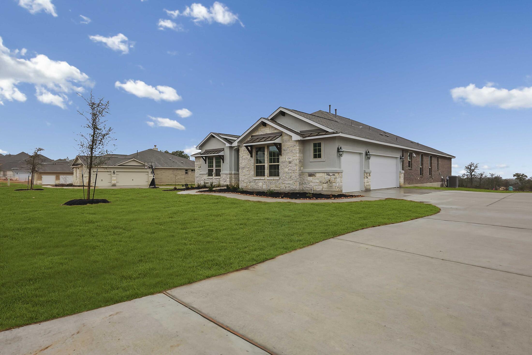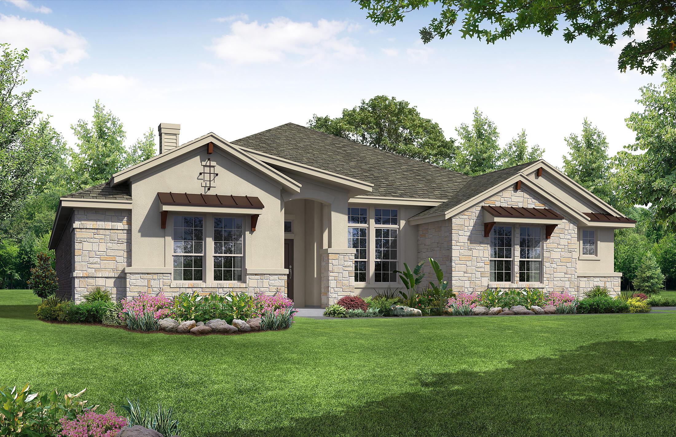 The Richland is a 4 bedroom, 3.5 bath, single story home with a 2 car side entry garage. This home features a formal dining room, Butler’s pantry, large open concept family and kitchen area with a game room that leads out to a very large extended covered patio. The master retreat has a bay window, spacious walk-in shower, tub, dual vanities with ample space in the walk in closet. Other options available include media room, optional multi-generational bedroom design and bonus room.