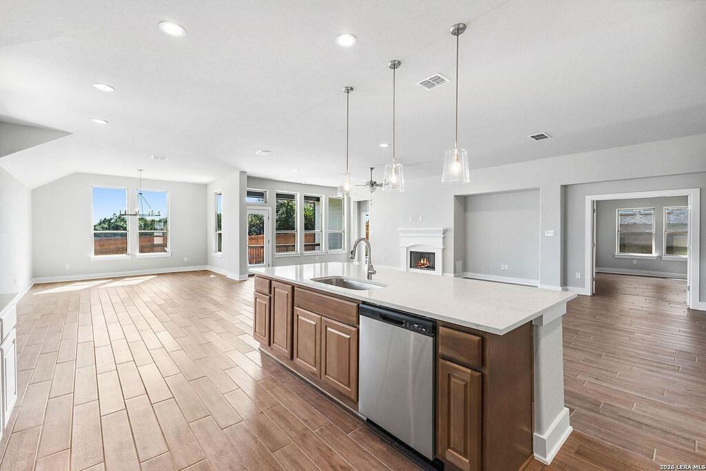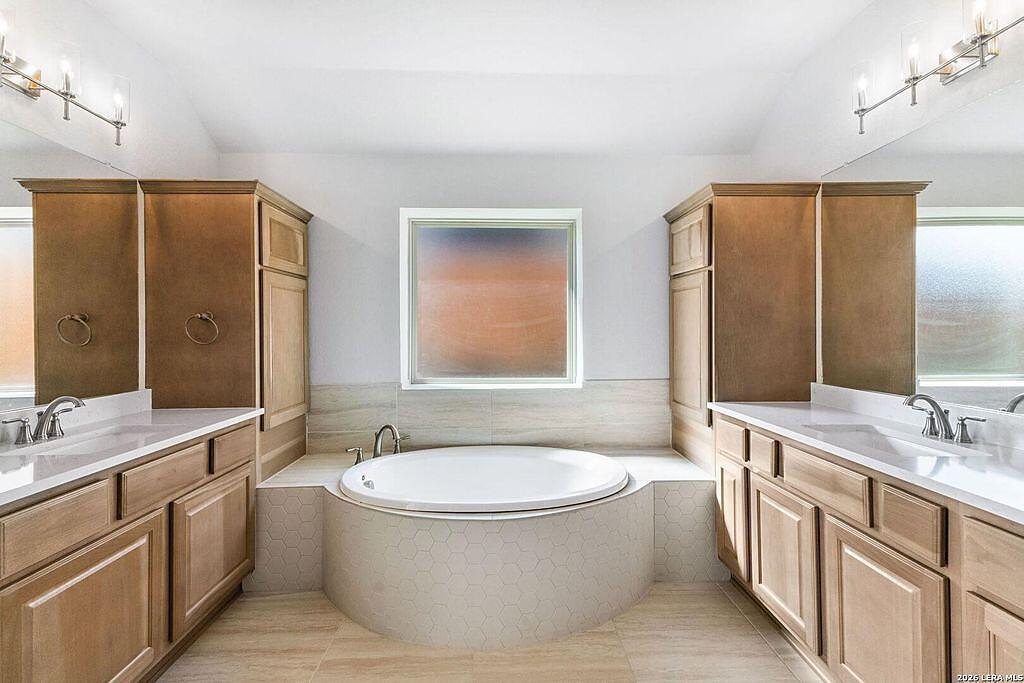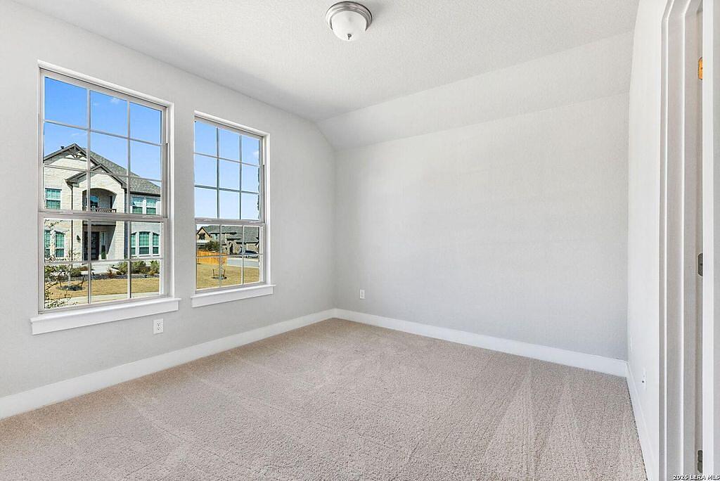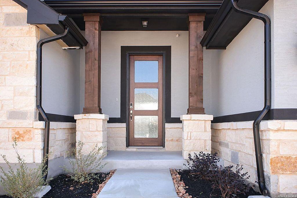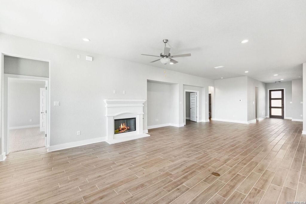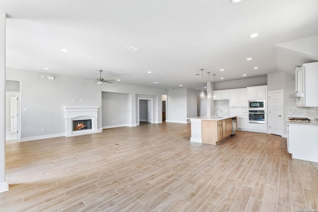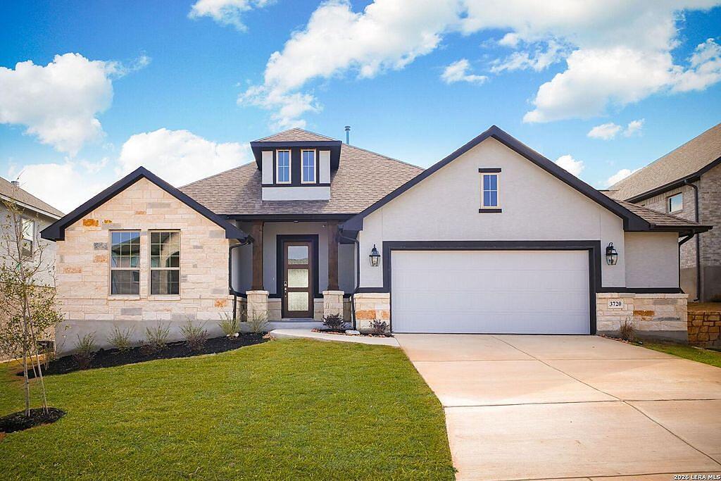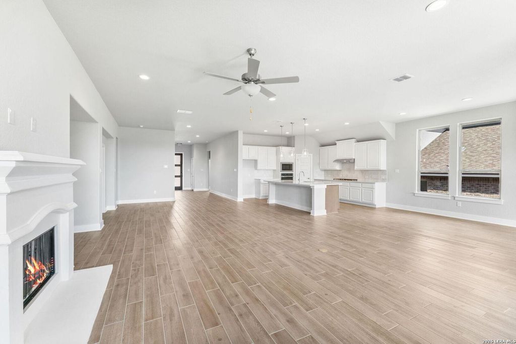The Richmond Plan at Everly Estates offers a sophisticated 2,638 sq. ft. layout situated on a premier 1/2 acre lot. This energy-efficient home features a high-efficiency air conditioning system and Low E 3 solar reflective windows to ensure year-round comfort. The interior is highlighted by luxury vinyl plank flooring and a wood-burning fireplace with a custom stone surround and mantle. The gourmet kitchen is equipped with J-Kraft custom shaker cabinets and a premium GE® stainless steel appliance package. Outside, the property includes a fully sodded yard with native drought-resistant landscaping and a professional irrigation system. With its brick and stone elevation and 30-year architectural shingles, this home perfectly blends Hill Country accents with modern durability.