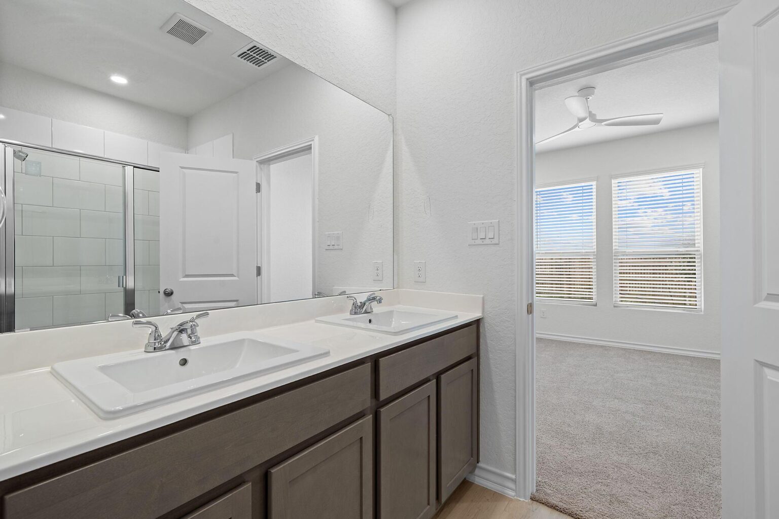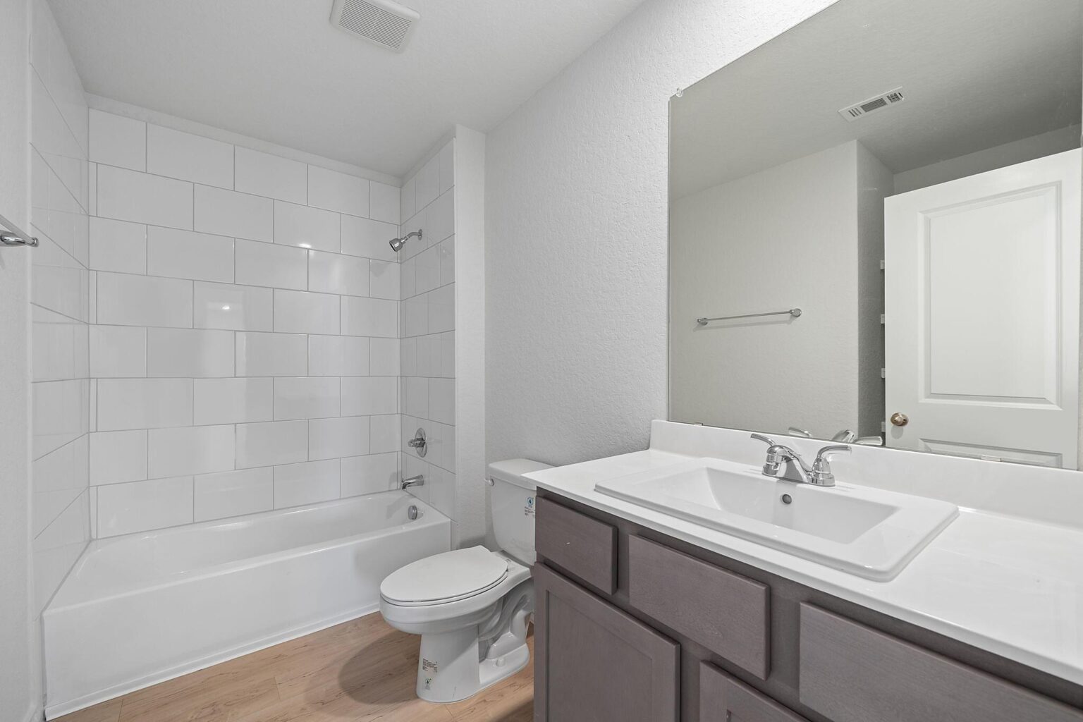 The Presidio offers 2,047 sq. ft. of well-planned living space, blending functionality with contemporary style. The main level features an inviting open-concept layout where the living area, kitchen, and casual dining space flow effortlessly, extending to a covered patio for outdoor enjoyment. A private primary suite with a walk-in closet and spa-like bath provides a peaceful retreat. Upstairs, a spacious game room serves as the heart of the second floor, surrounded by three secondary bedrooms and a full bath. A convenient powder room, dedicated laundry area, and two-car garage enhance everyday practicality. Designed for modern living, this home delivers comfort, versatility, and timeless appeal.