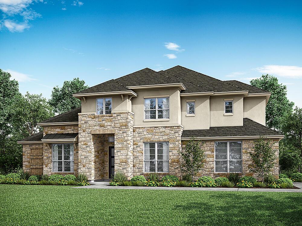 The two-story Aransas floor plan is designed to impress. From its open-concept living, dining and kitchen area to its optional 3-car garage and enhanced kitchen, the Aransas gives you the freedom to let your imagination run wild when it comes to design. The primary bedroom offers residents an ensuite with a spacious walk-in closet, providing the ultimate luxury experience. Three additional bedrooms, a game room, a flex room and a study make this home an excellent choice for families or for those looking for extra space.