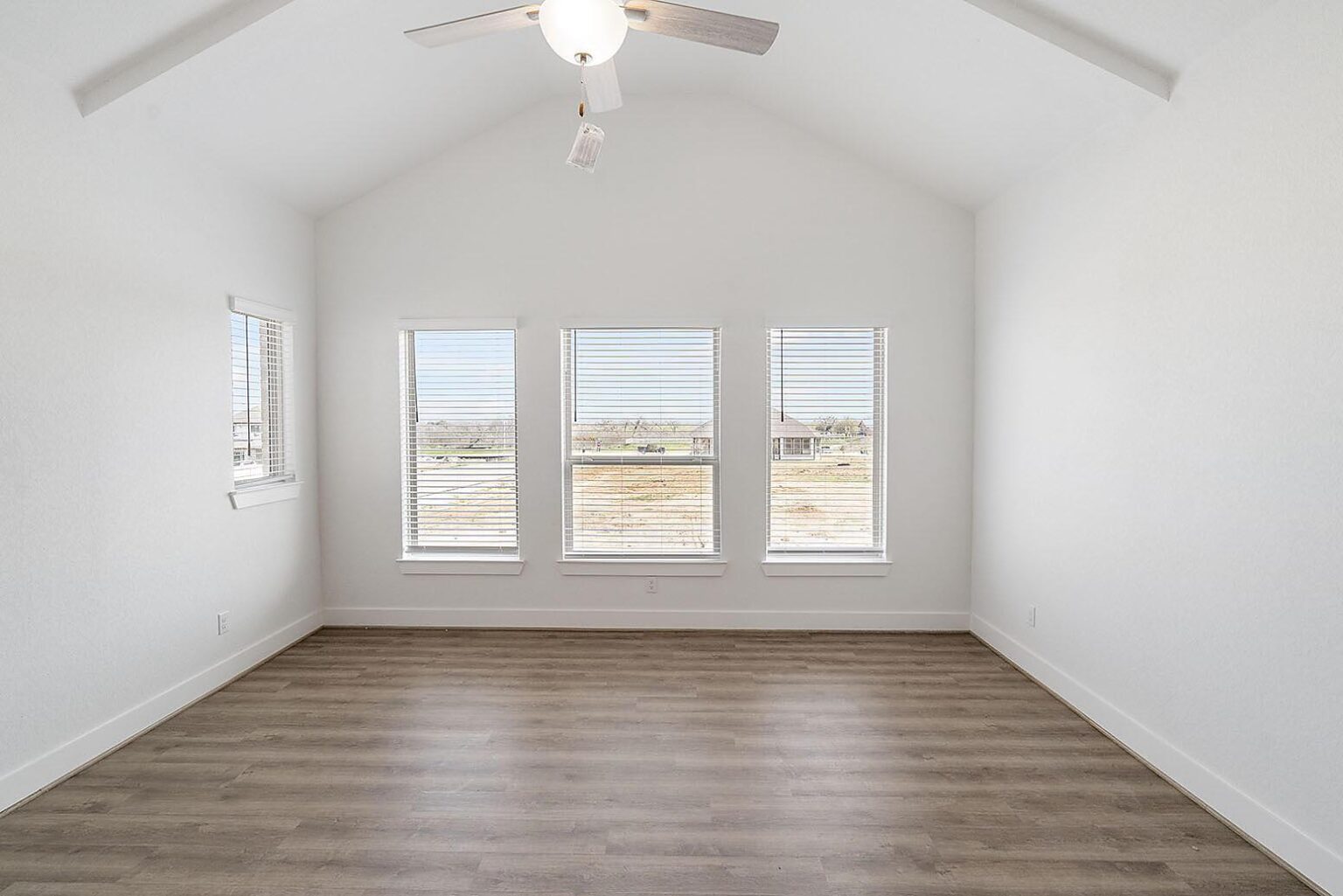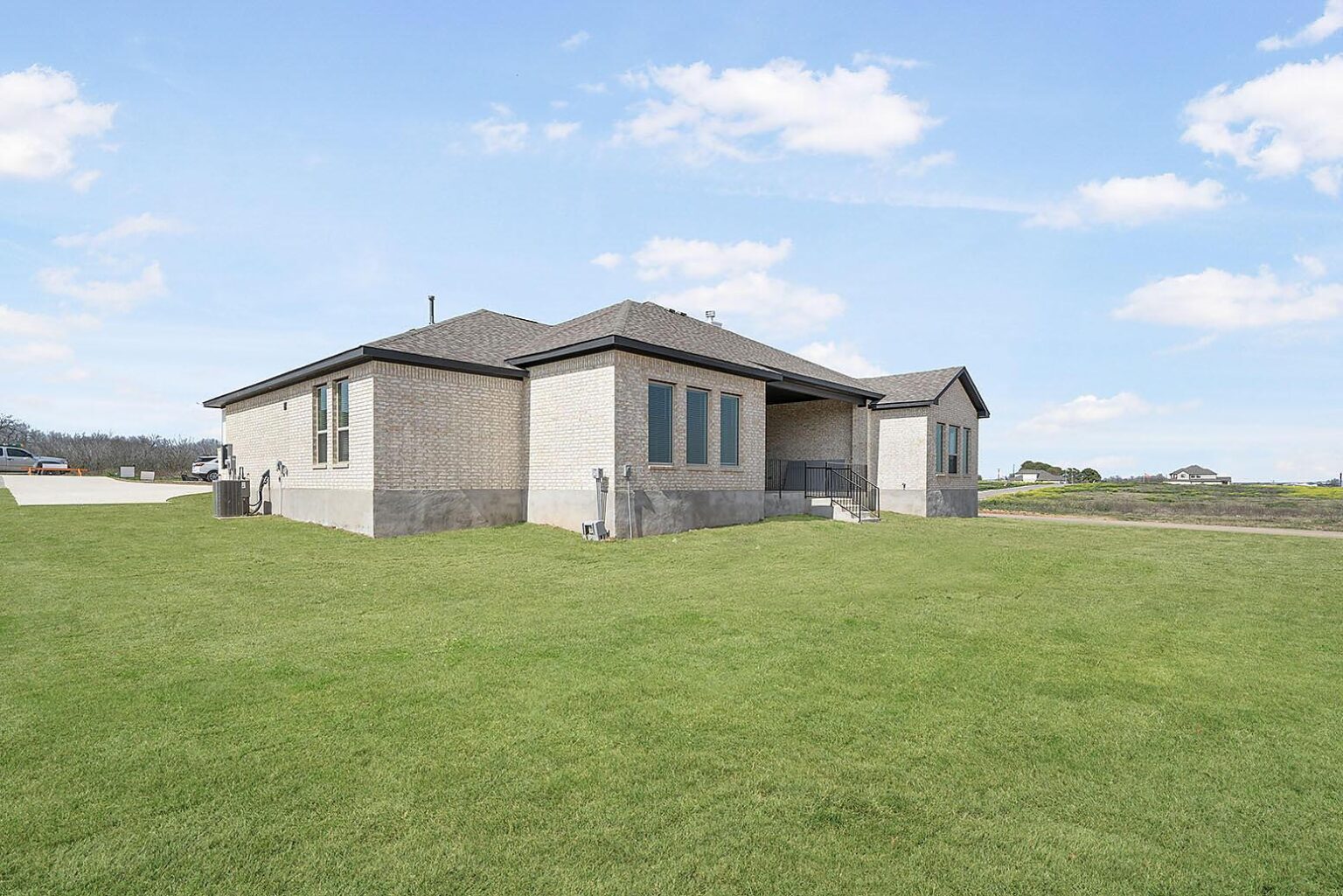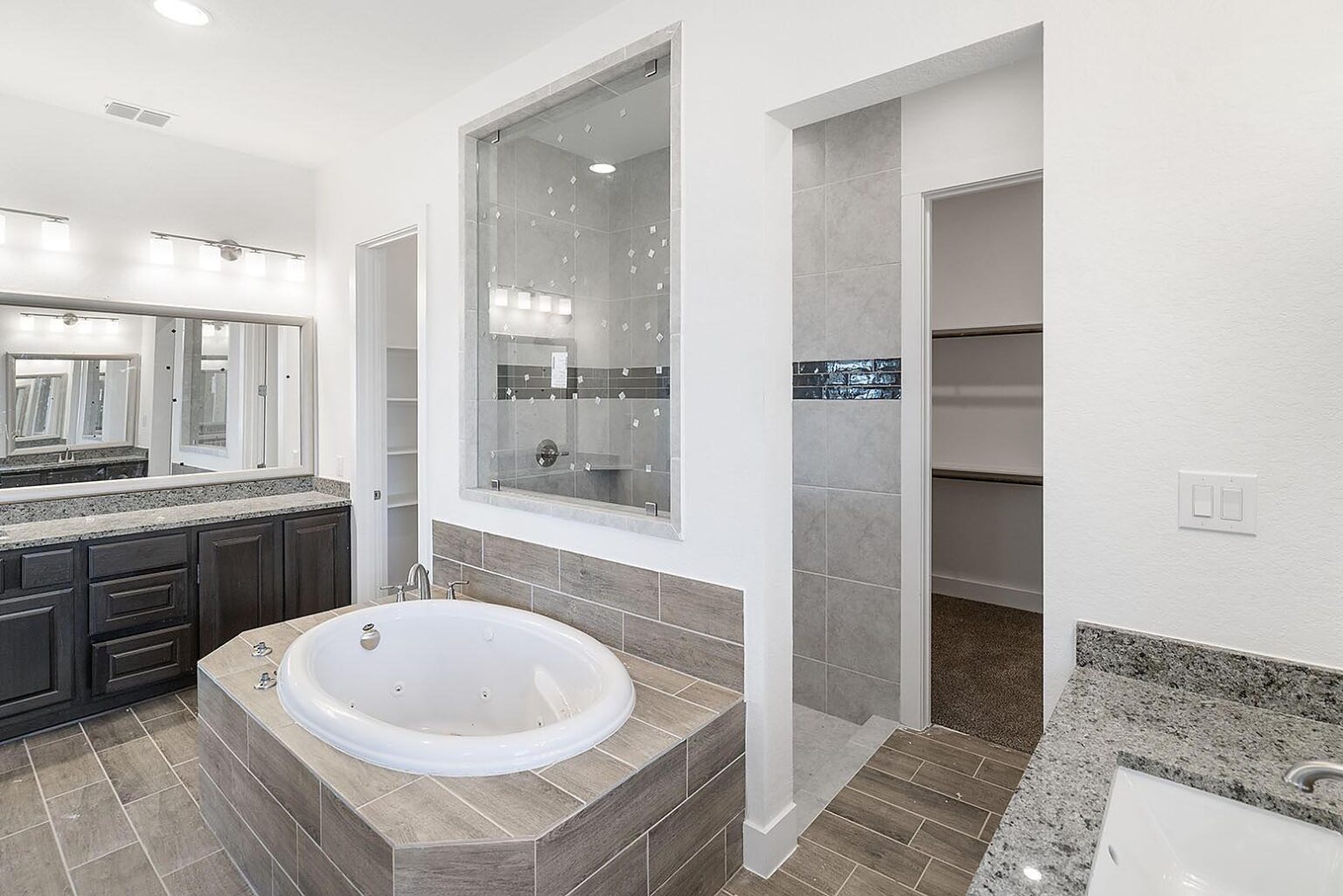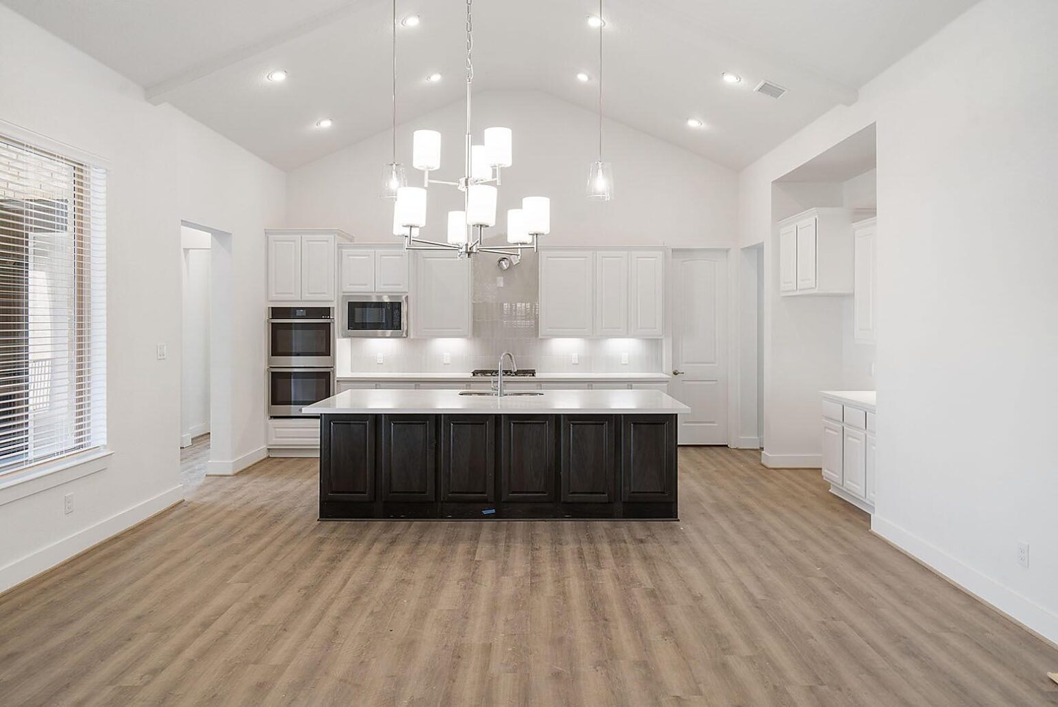 The Pedernales Plan at Everly Estates is a grand single-story architectural design offering 3,391 sq. ft. of living space on a sprawling 1/2 acre homesite. The heart of this home is an expansive, open-concept family, dining, and kitchen area featuring dramatic 20’ ceiling heights, creating an atmosphere of unmatched scale and light. For those who love the outdoors, the residence includes a massive standard covered patio, providing a premier space for entertaining guests or enjoying the native, drought-resistant landscaping. The primary suite serves as a true private retreat, now featuring two oversized walk-in closets and a spa-like bath with a Royal Bath garden tub. Modern efficiency is built into every detail, from the HVAC system and Low E 3 windows to the eco-friendly gas tankless water heater. The gourmet kitchen remains a culinary focal point, boasting J-Kraft custom shaker 42” cabinetry and a premium GE® stainless steel appliance suite. Meticulously finished with a brick and stone elevation, this home blends Hill Country charm with modern living.