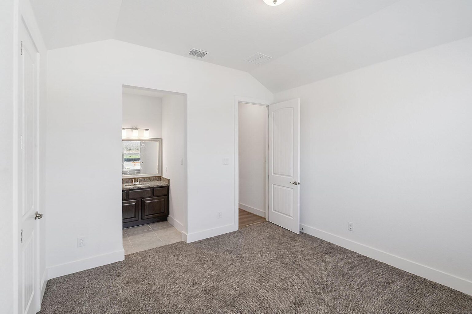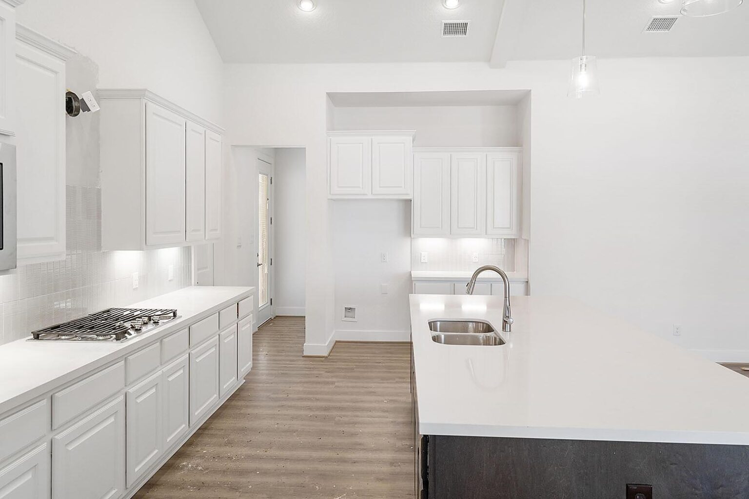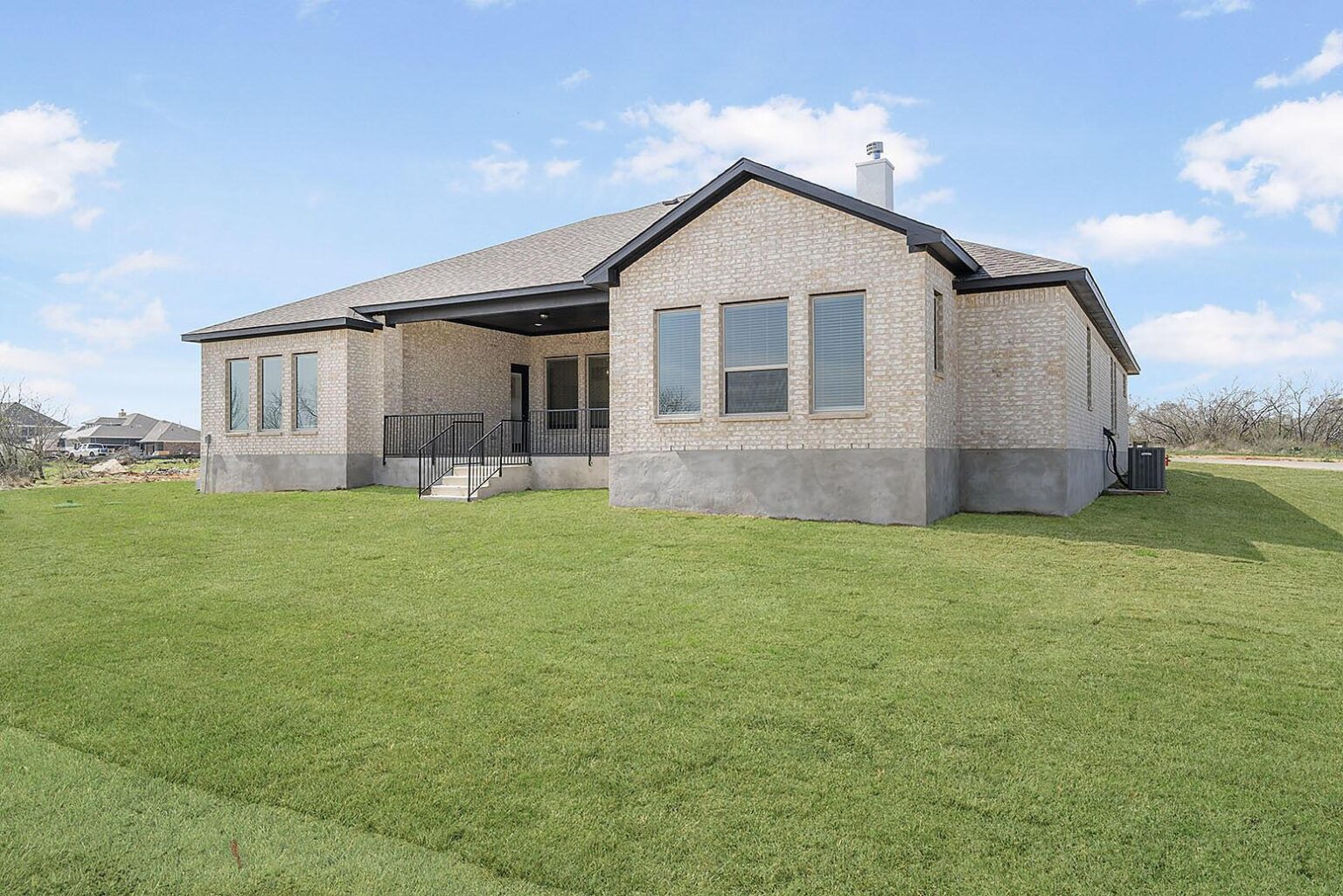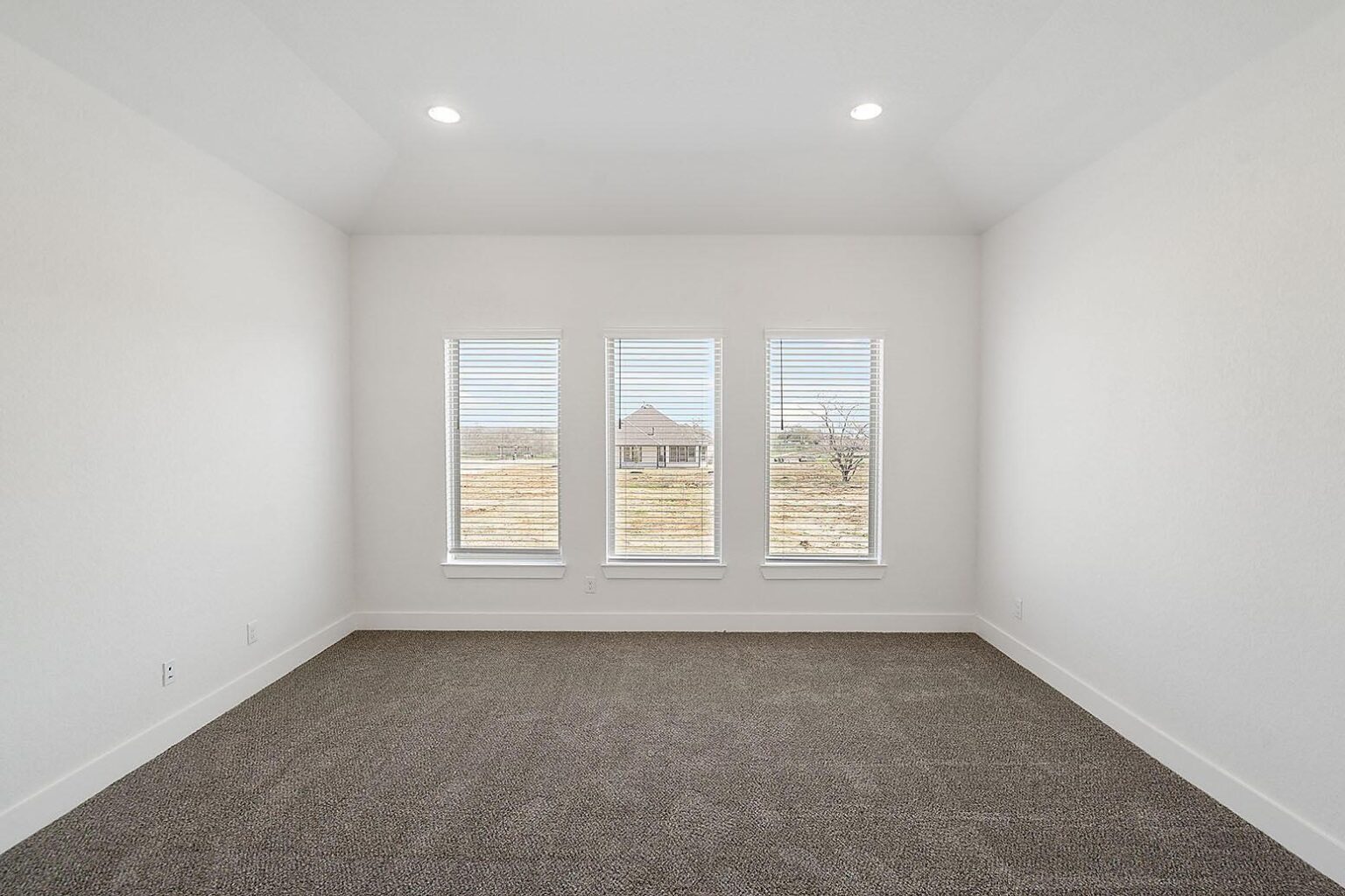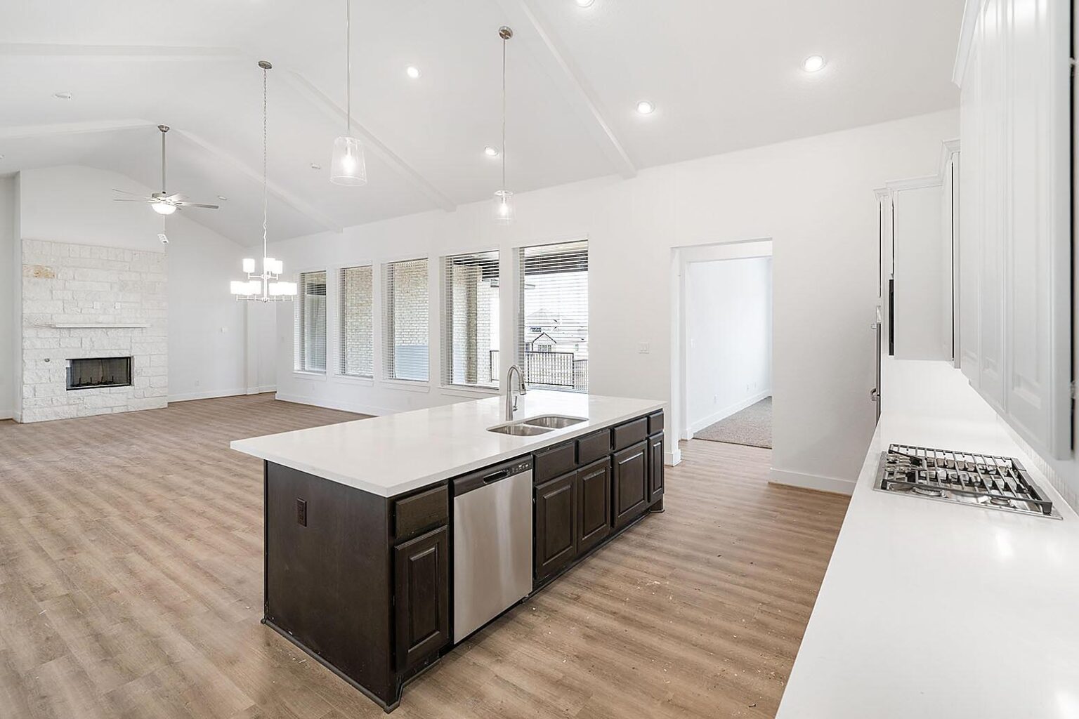 The Pedernales Plan at Everly Estates is a grand single-story architectural design offering 3,391 sq. ft. of living space on a sprawling 1/2 acre homesite. The heart of this home is an expansive, open-concept family, dining, and kitchen area featuring dramatic 20’ ceiling heights, creating an atmosphere of unmatched scale and light. For those who love the outdoors, the residence includes a massive standard covered patio, providing a premier space for entertaining guests or enjoying the native, drought-resistant landscaping. The primary suite serves as a true private retreat, now featuring two oversized walk-in closets and a spa-like bath with a Royal Bath garden tub. Modern efficiency is built into every detail, from the HVAC system and Low E 3 windows to the eco-friendly gas tankless water heater. The gourmet kitchen remains a culinary focal point, boasting J-Kraft custom shaker 42” cabinetry and a premium GE® stainless steel appliance suite. Meticulously finished with a brick and stone elevation, this home blends Hill Country charm with modern living.